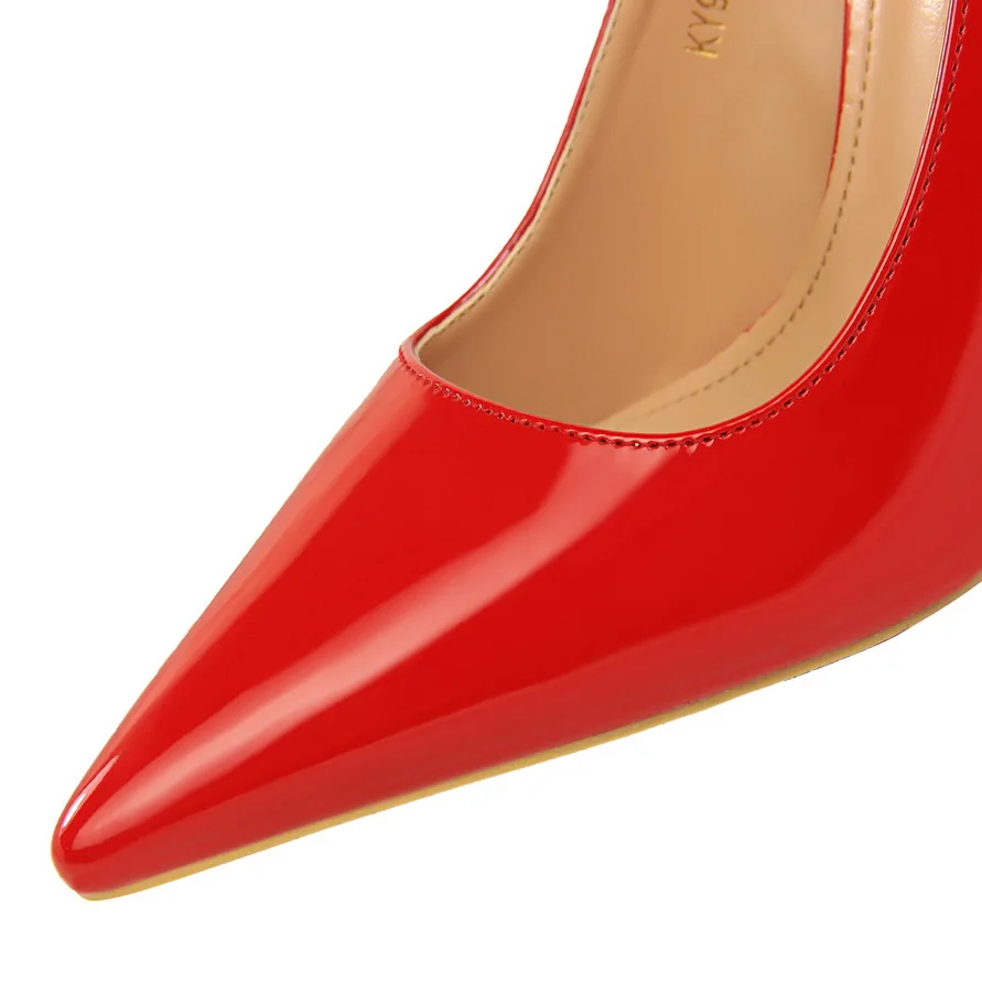 2019 New Autumn Fashion Solid Patent Leather Shallow Fashion Women Pumps Sexy Cut-Outs Bowtie Pointed Toe High Heels 10cm Fashi