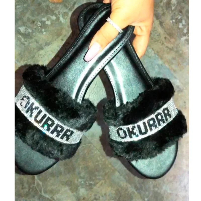 2020 Fashion Women Slippers Furry Fox Fur Slides Home Color Fur Flip Flops Fluffy Plush House Shoes Female Winter Warm Slippers