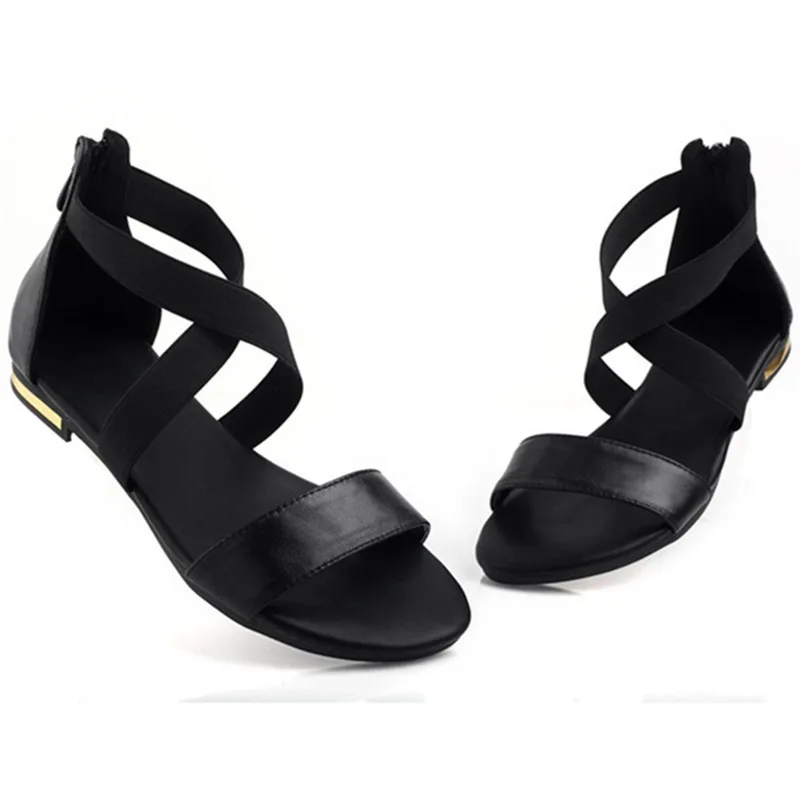 Morazora Big Size 34-46 New Genuine Leather Sandals Women Zipper Summer Black Gold White Casual Beach Flat Sandals Wholesale