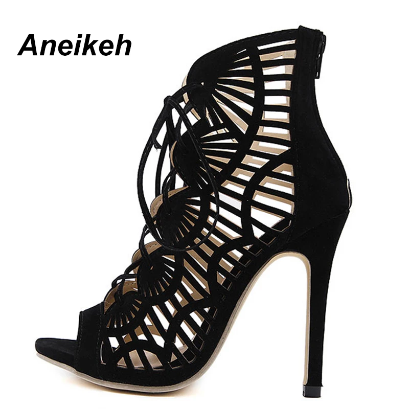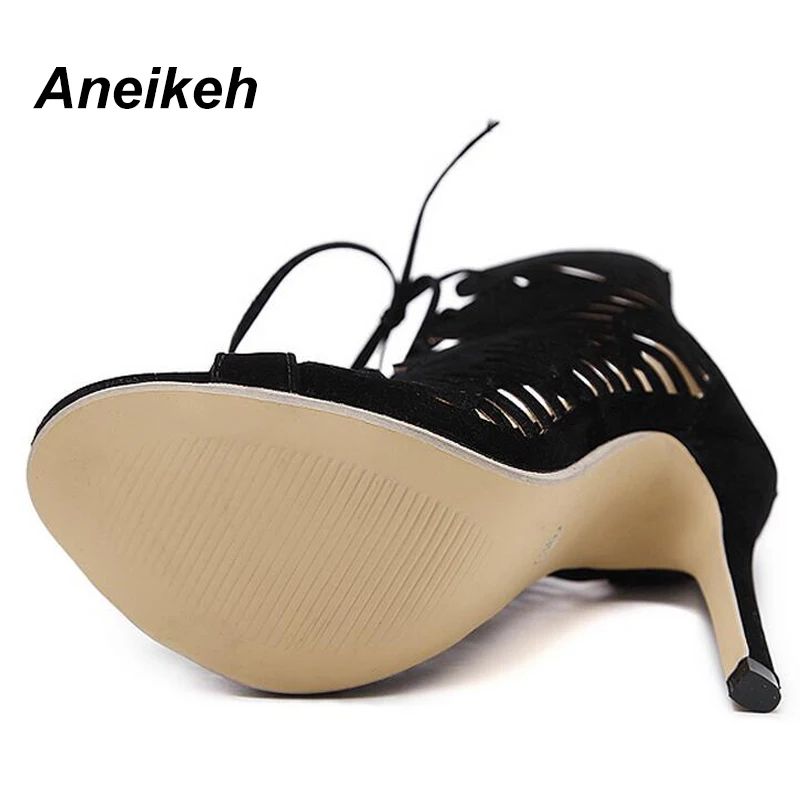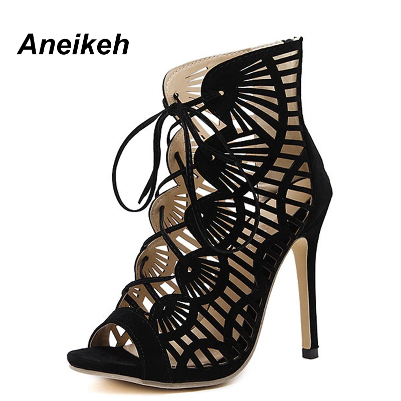 Aneikeh Sandals Women High Heels Summer Fashion Women Sandals 2018 Black Cut-Outs Sandalias Mujer Size 35-40 Party Shoe 552