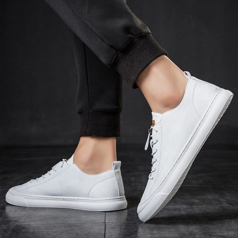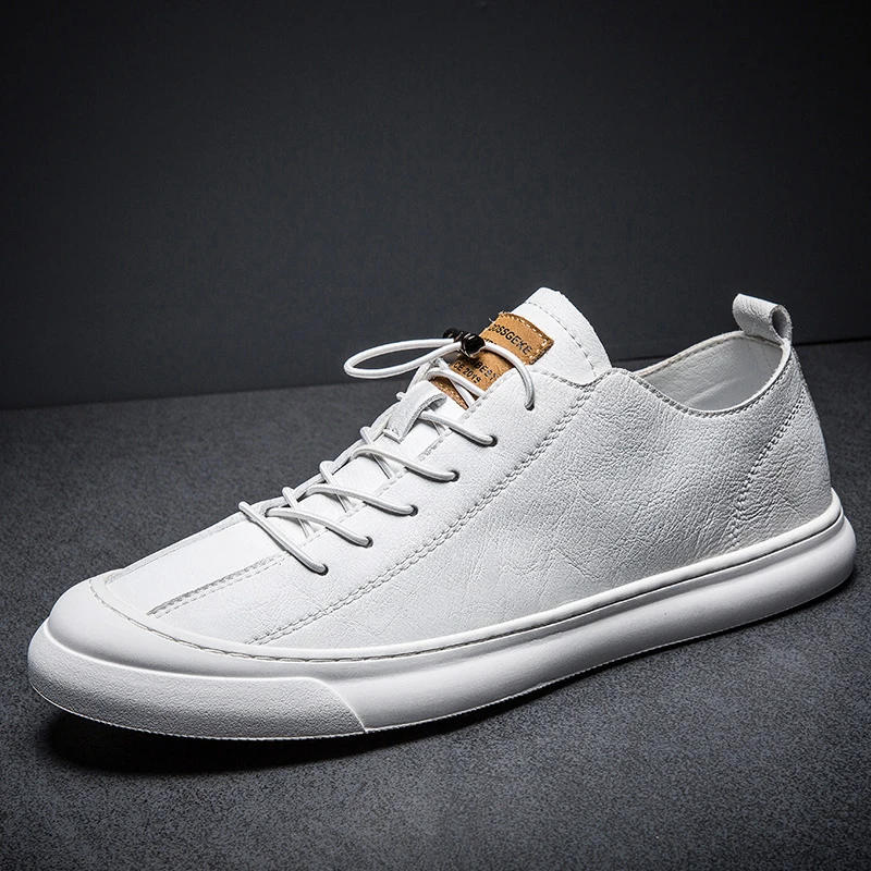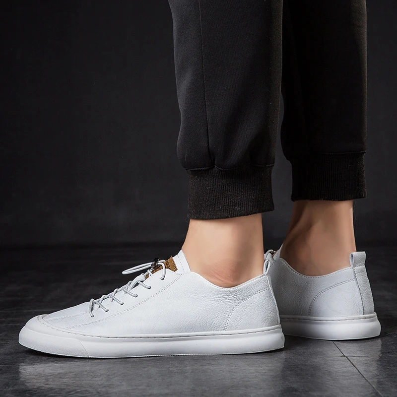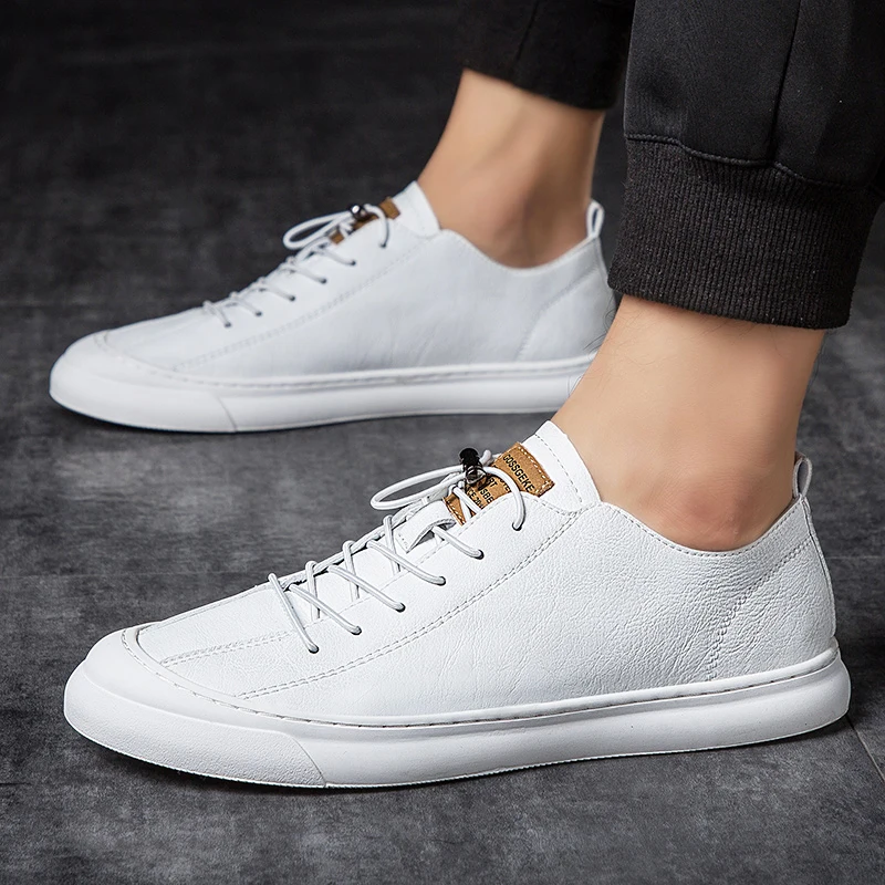 Leather Shoes Men Sneakers Fashion Breathable Casual Men Shoes Trend Wild Casual Tide Flats Simple White Sneakers