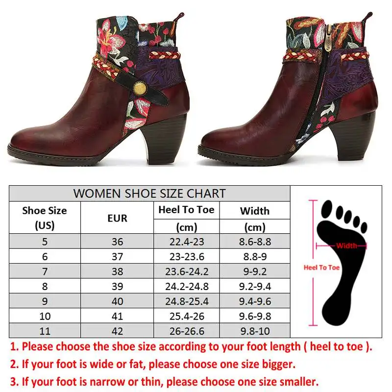 Socofy Retro Printed Sheep Women Boots Leather Boots Women Shoes Woman Vintage Block High Heels 8cm Ankle Bootszapatos De Mujer