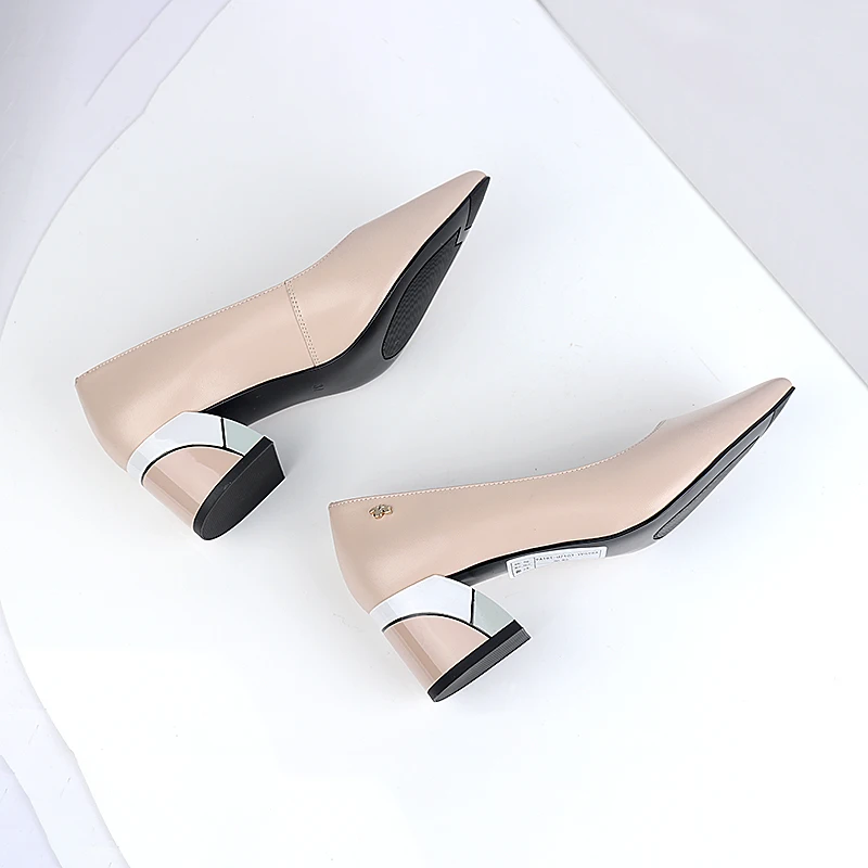 Sophitina Brand Pumps Genuine Leather Fashion High Square Heels Pointed Toe Working Spring Shoes Handmade Sheepskin Pumps A84