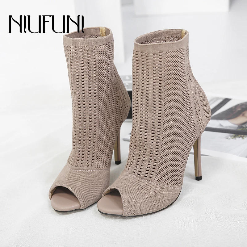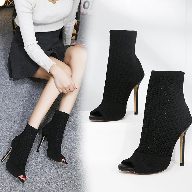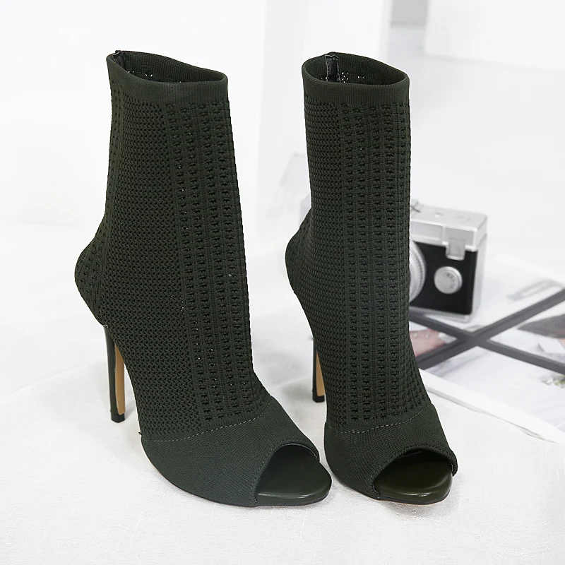 Special Price Stretch Fabrics Stiletto Solid Color Women's Ankle Boots High Heels Peep Toe Knit Sock Booties Shoe with FREE Worldwide Shipping!