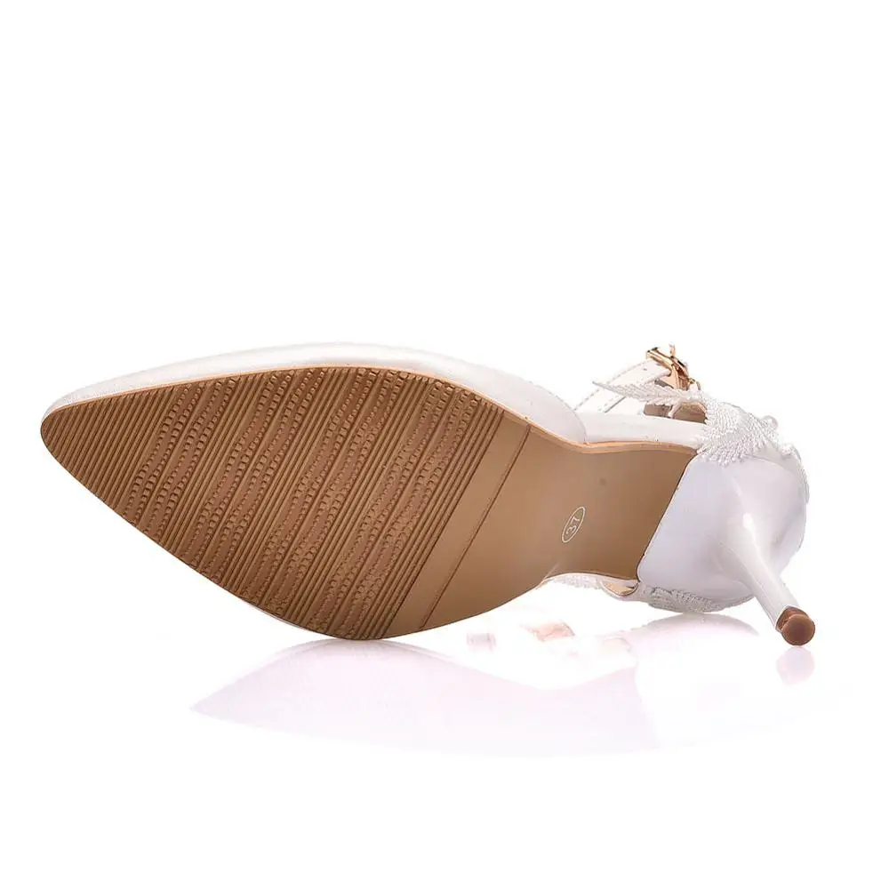 Best Offer Crystal Queen Large Size Women's Shoes White Lace High Heels Banquet Wedding Shoes Bridal Shoes Poi with FREE Worldwide Shipping!