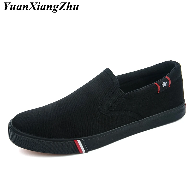 Black White Solid Men Casual Shoes Simple Canvas Mens Loafers 2019 High Quality Anti-Slip Comfortable Vulcanized Shoes Man Flats