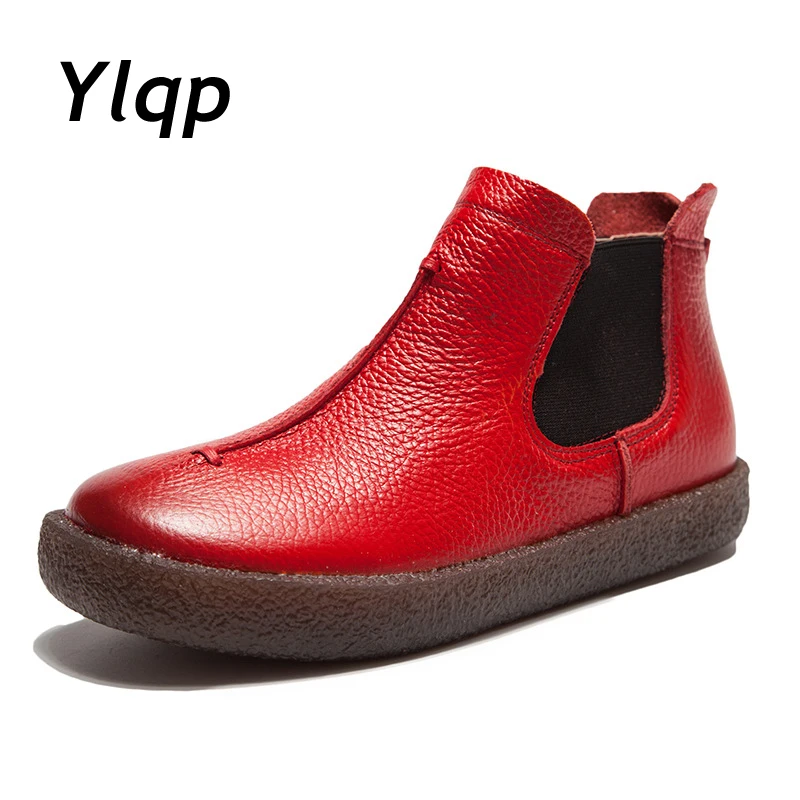 Women Flat Platform Shoes Autumn Winter Shoes Genuine Leather Ankle Boots For Women Footwear Soft Vintage Ladies Booties 2020