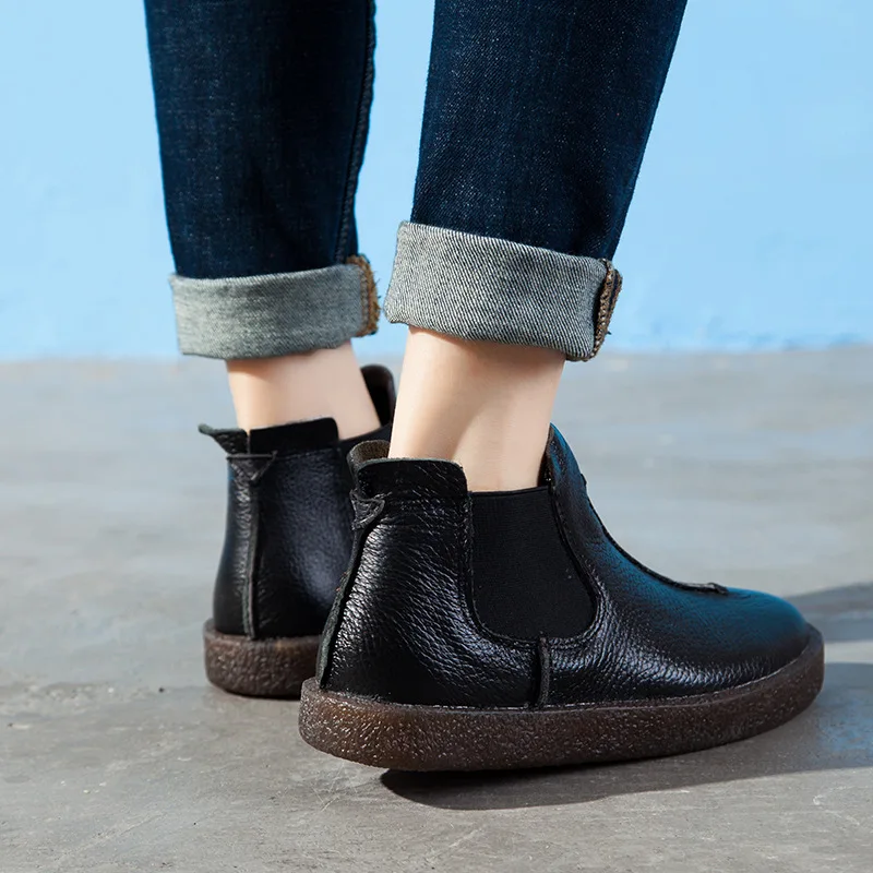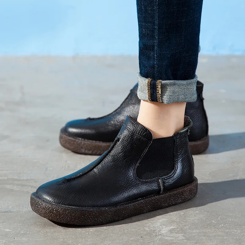 2019 Vintage Style Genuine Leather Women Boots Flat Booties Soft Cowhide Women's Shoes Front Zip Ankle Boots Zapatos Mujer