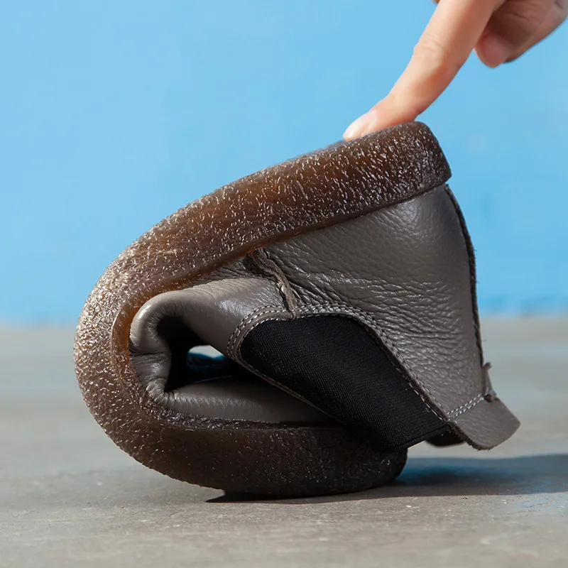 Autumn Winter 2019 Genuine Leather Women's Ankle Boots With Fur Shoes Flat Bottom Casual Shoes Non-Slip Warm Furry Booties